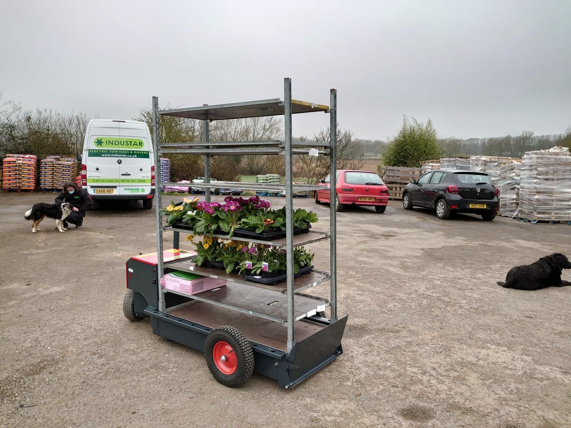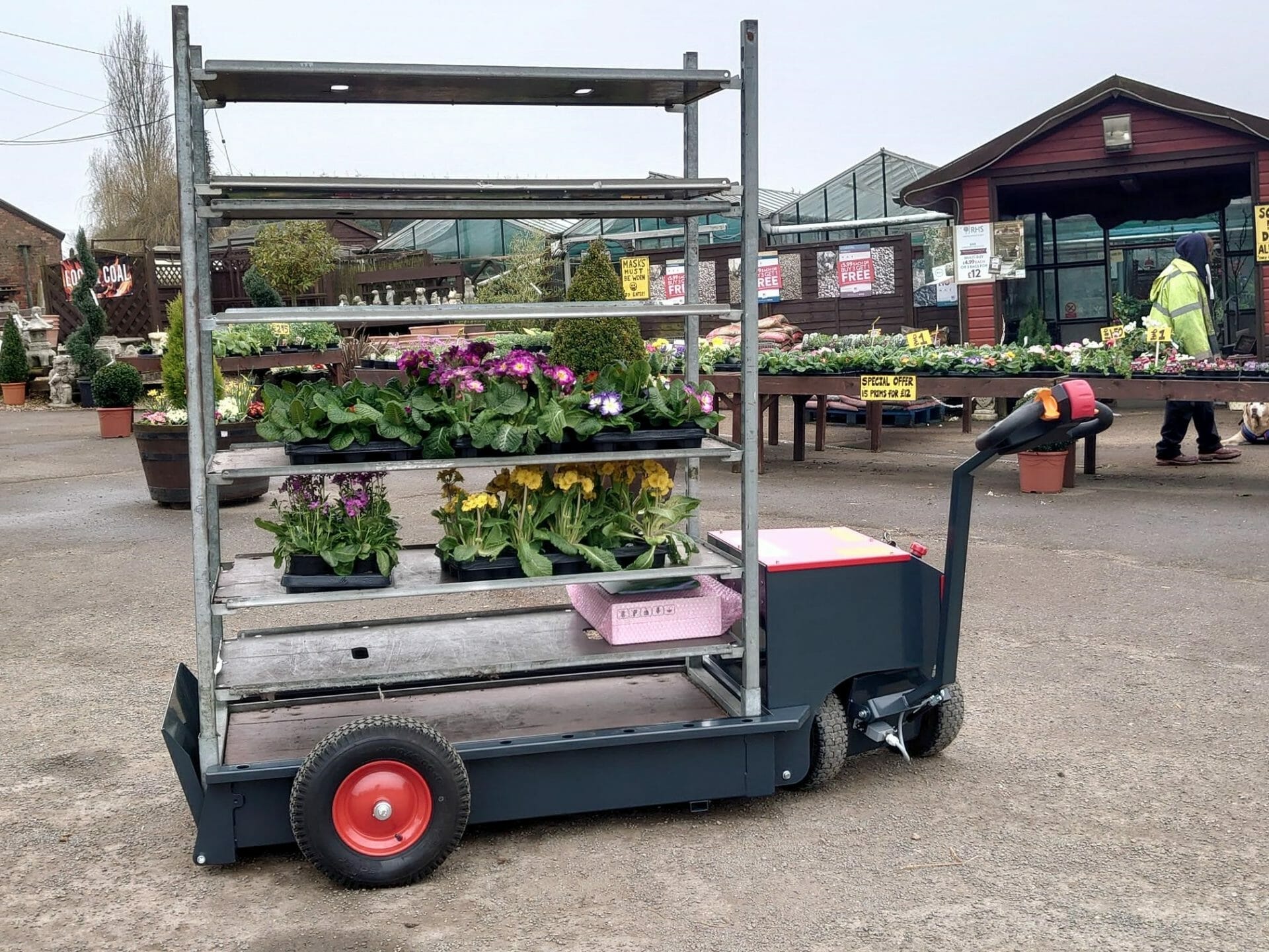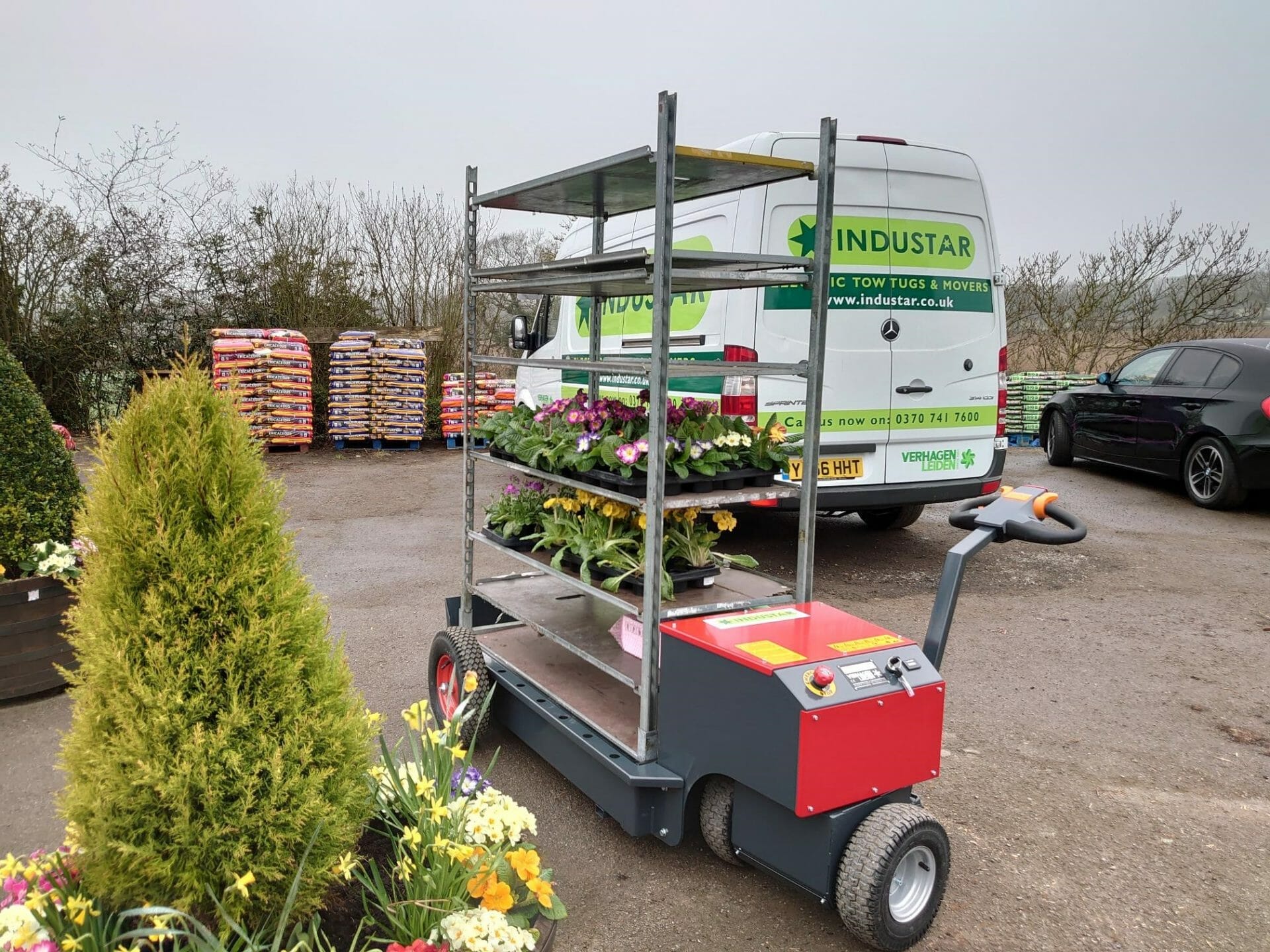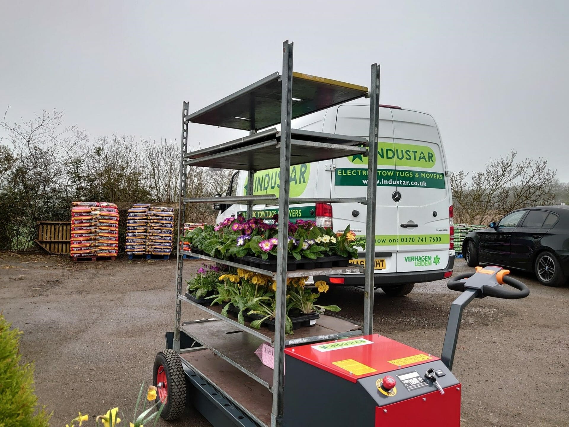 Electric tow tugs are becoming ever more popular for moving danish trollies and trailers around plant nurseries, greenhouses & growing facilities. There are a range of walk-behind, ride-on or specialist V-Move tow tugs that can suit your requirements, regardless of how rough the ground is.